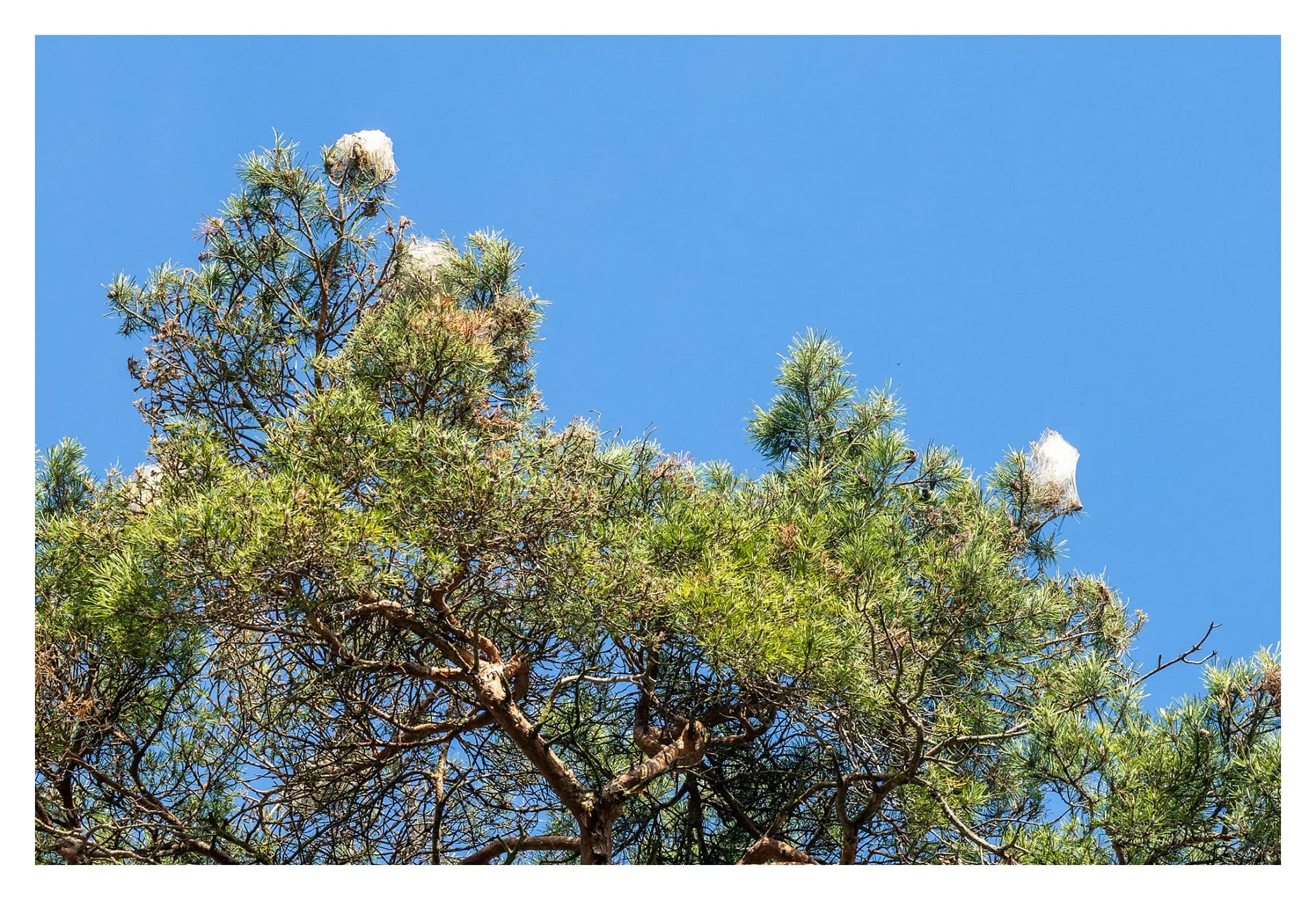 • Ses nids soyeux visibles dans les arbres